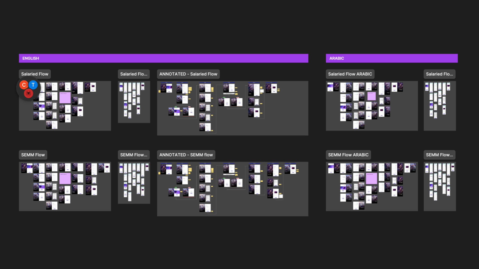 2. Design - Three visual concept directions were presented as moodboards and after selecting the direction, the team then produced high-fidelity UI screens across four journey variants: salaried web, salaried mobile, self-employed web, and self-employed mobile, in both English and Arabic. The self-employed flow included additional steps for document submission.